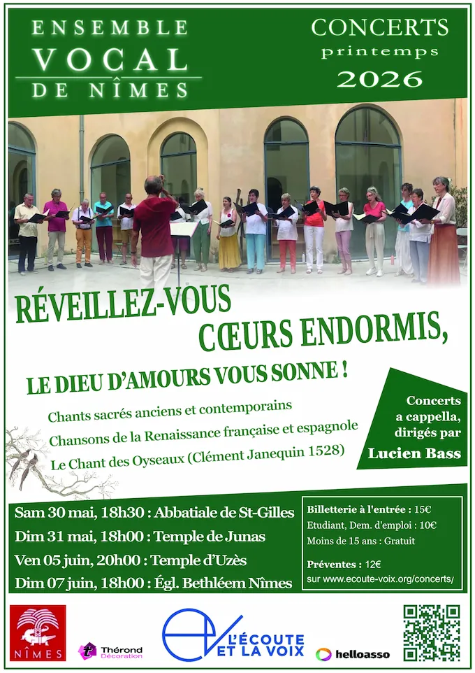 – Lucien Bass, chef de chœur de l’Ensemble Vocal de Nîmes : 06 75 49 88 83